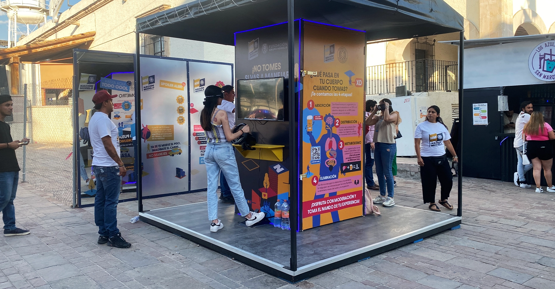 Se llevaron a cabo activaciones en escuelas con dinámicas lúdicas y gamificación con personajes virtuales. Para personas con potencial adicción, se diagnosticaron factores de riesgo mediante la gamificación, y se capacitó al personal de salud en el uso de la plataforma digital. A nivel comunitario, se promovieron buenas prácticas de seguridad vial con el mapeo de zonas de riesgo, capacitando a autoridades públicas y difundiendo material informativo digital.